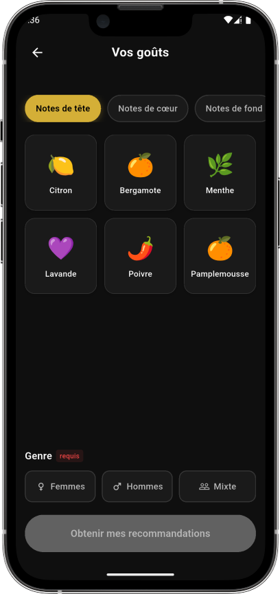 Dites-nous ce que vous aimez, des notes olfactives à votre style personnel.